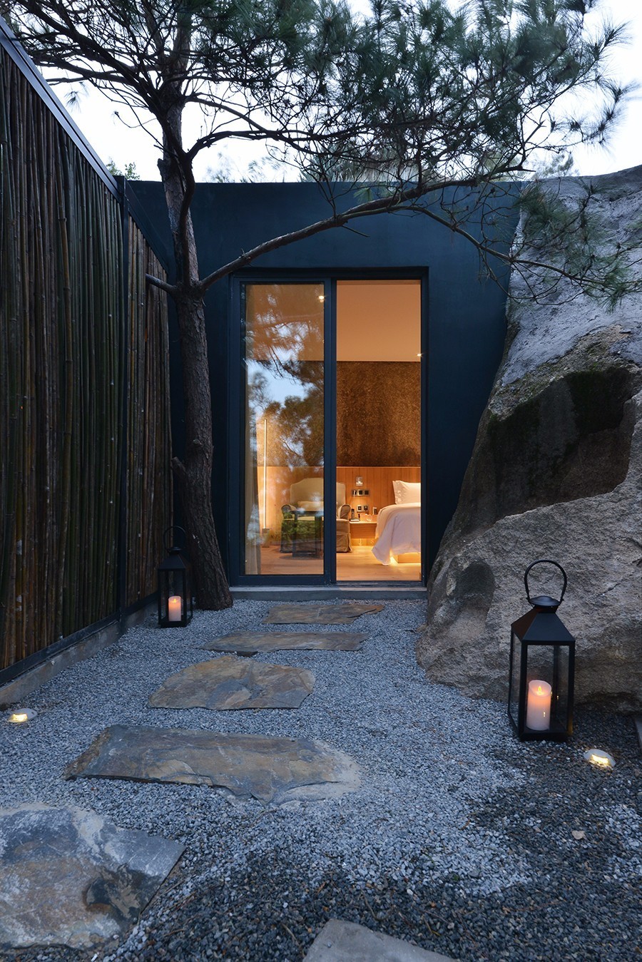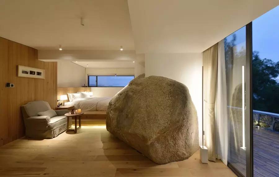 有3個(gè)房間是就著山體改造的,我們?cè)诜块g里留下了大石頭。我們的本意是增加自然的元素,不過(guò)客人的反饋也很有趣:石頭是活的,睡覺(jué)的時(shí)候有點(diǎn)緊張!