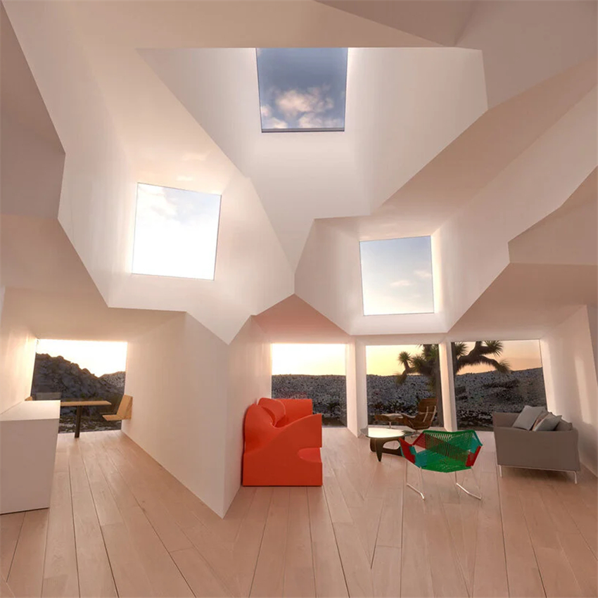而外墻則采用了白色的配色,在約書(shū)亞樹(shù)國(guó)家公園的荒漠中,顯得非常亮眼。