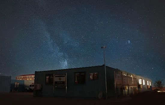 驅(qū)車從內(nèi)蒙古自治區(qū)阿拉善盟巴彥浩特向北出發(fā),車程430公里,終于抵達(dá)了中蒙邊境烏力吉口岸。在一座建筑工地的背后,一排整齊的集裝箱映入眼簾,在以灰黃為主色調(diào)的世界里,藍(lán)色的集裝箱顯得有些突兀。屋頂上飄揚(yáng)著警旗,這里是烏力吉口岸邊境派出所。