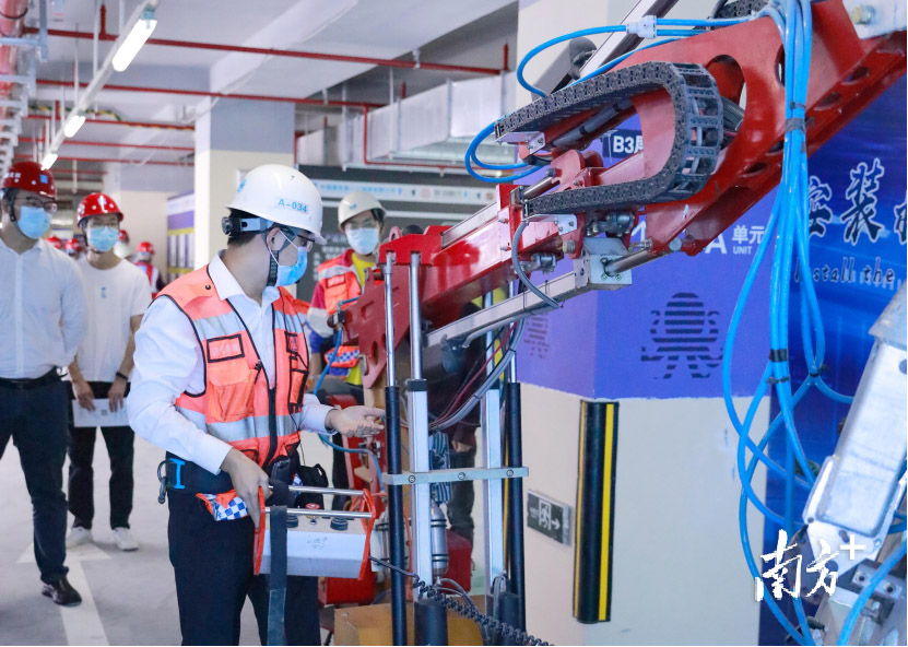 在講師的帶領下,觀察團先后參觀了質量實體樣板展示區、綠色施工及精益施工展示區、保溫一體板展示區、混凝土控制展示區、質量虛擬樣板展示區、PC模型吊裝體驗區、科技專利展示區、智能安全展示區、機器人黨建VR展示區,高度評價了插花地項目預制建筑、屋面保溫一體板、集成管井等新型綠色施工工藝,肯定了該項目在羅湖區預制建筑開發中的示范作用。