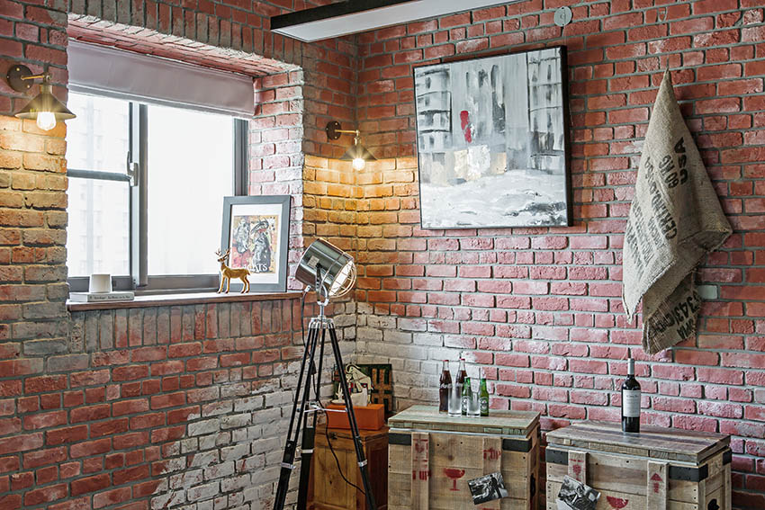 裸露紅磚墻不貼滿,帶有些微破壞力道,加上故意噴上的白色水泥漆,從客廳延伸至餐桌的墻面充滿工業(yè)風色彩,展露自由不羈生活態(tài)度并呼應不修飾壁面;電視采用機動性擺放,外觀符合空間設定,朋友來訪時也能隨時移動,方便每個角落都看到畫面。除了詮釋工業(yè)風精神,設計師在此案中多應用可再利用材質,像是木棧板沙發(fā)、回收木箱,融合場域風格也賦予對象新生命,家具能輕易移動位置,更方便喜愛攝影的屋主捕捉畫面。